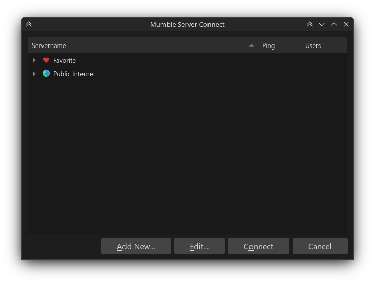 Start Mumble and configure your audio devices in the Audio Wizard that opened alongside the main window.
